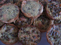 Массу посолить, посыпать черным свежемолотым перцем, перемешать и разложить получившуюся начинку по формочкам с тестом.