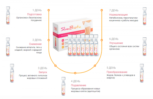 SlimBiotic система для похудения, созданная на натуральной основе и позволяющая без срывов, диет, голоданий и ограничений избавиться от лишнего веса. Препарат разработан специально для тех, кто стремится похудеть без вреда для здоровья. В составе природные вещества, помогающие быстро расщепить жировые клетки и вывести лишнюю жидкость.